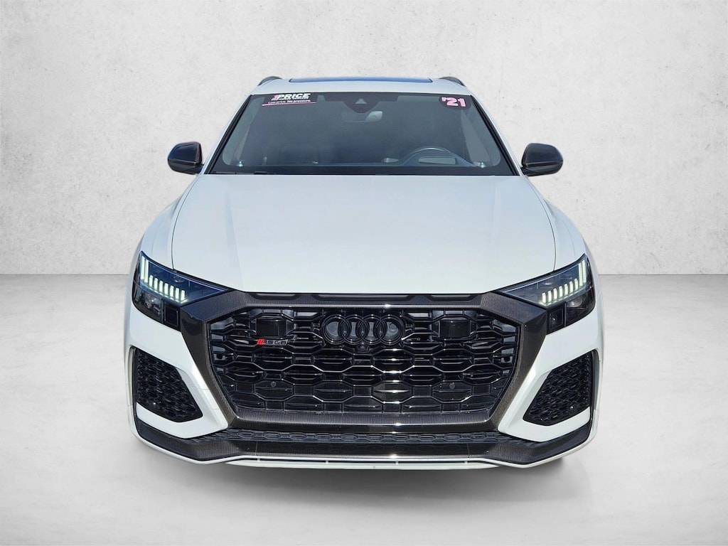 This 2021 Audi RS Q8 is proudly offered by BMW of Las Vegas This versatile SUV is perfect for families or contractors with its oversized cargo area, exceptional horsepower and option upgrades. Indulge yourself with one of the most highly crafted, most luxurious automobiles available today. No matter the weather conditions or terrain, this Glacier White Metallic AWD Audi RS Q8 handles with an elegant confidence. Fine interior appointments complement this vehicle's unprecedented performance. One of the best things about this Audi RS Q8 is that it has low, low mileage. It's ready for you to truly break it in. Added comfort with contemporary style is the leather interior to heighten the quality and craftsmanship for the Audi RS Q8 . Where do you need to go today? Just punch it into the on-board navigation system and hit the road. The 2021 Audi RS Q8 is built with pure muscle. Punch the throttle and feel the power of its torque and horsepower plant you firmly to the back of the seat. Driver and passengers will celebrate the comfort and convenience this Audi RS Q8 offers with its well-considered features. This rare vehicle is a prime example of automotive engineering perfected.